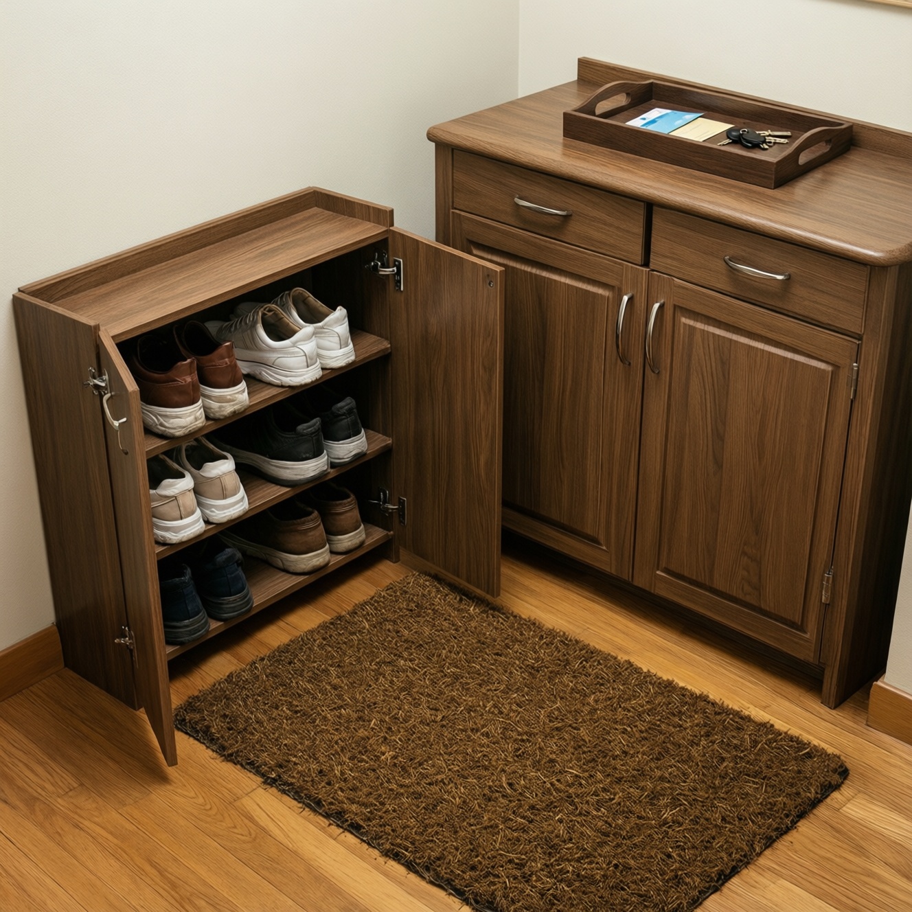 - Закрытое хранение: шкаф/тумба, где обувь не пылится и не захламляет проход.