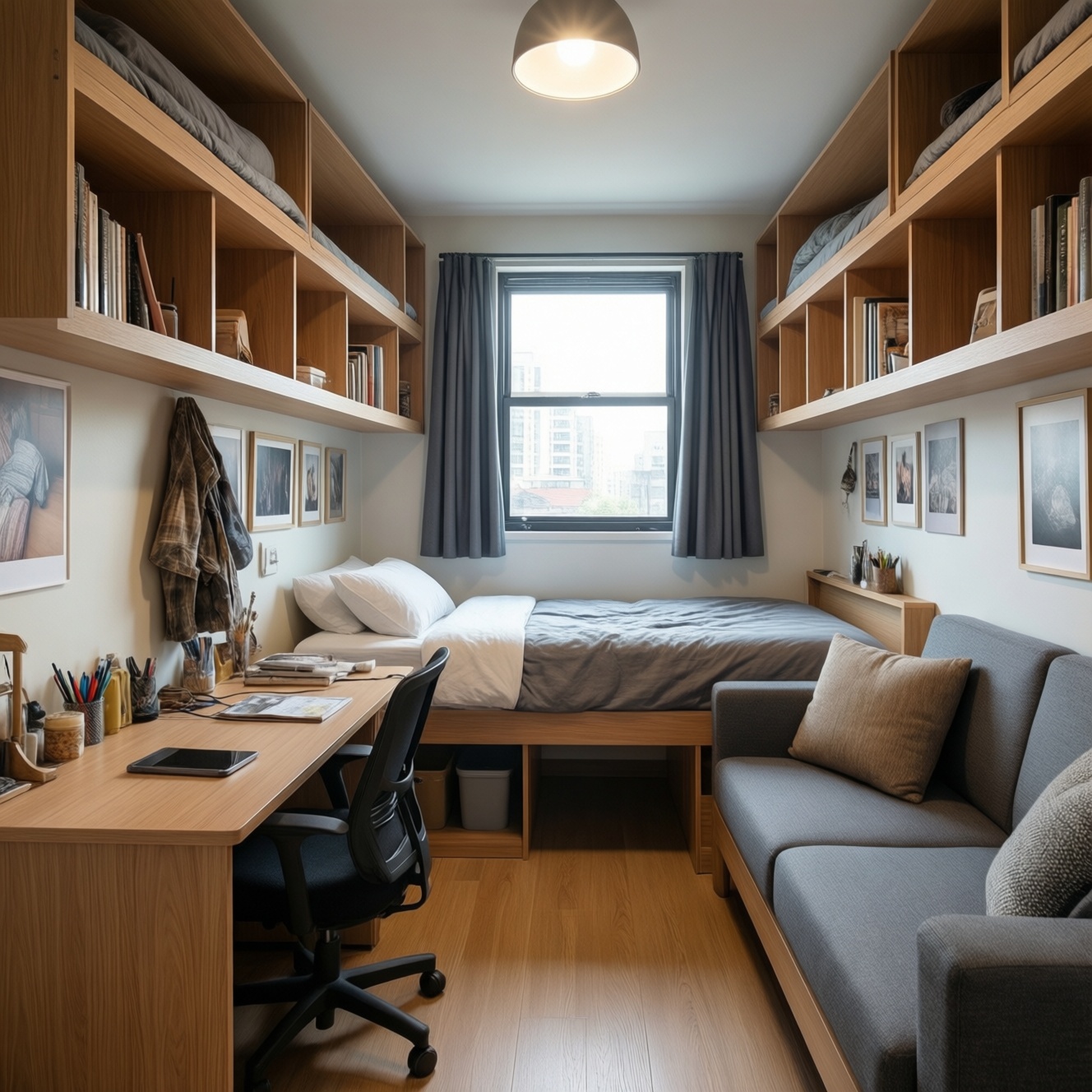 Выберите 1-2 функции, которые конфликтуют по времени: сон vs. работа, гости vs. тренировка, хранение vs. проход. Чаще всего максимальный выигрыш даёт сценарий "кровать на ночь - свободный пол днём".- Пример: рабочее место нужно ежедневно - тогда трансформируйте спальное место (а не стол).