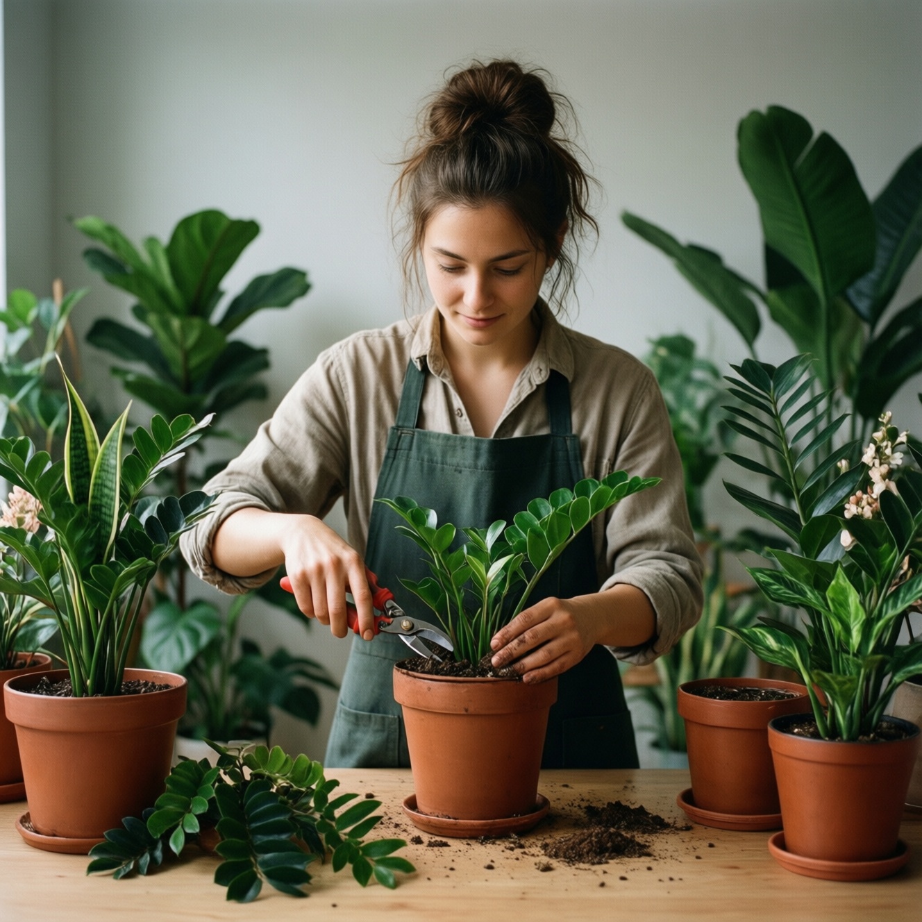 - Замиокулькас: устойчив к пересушке, важнее не заливать.