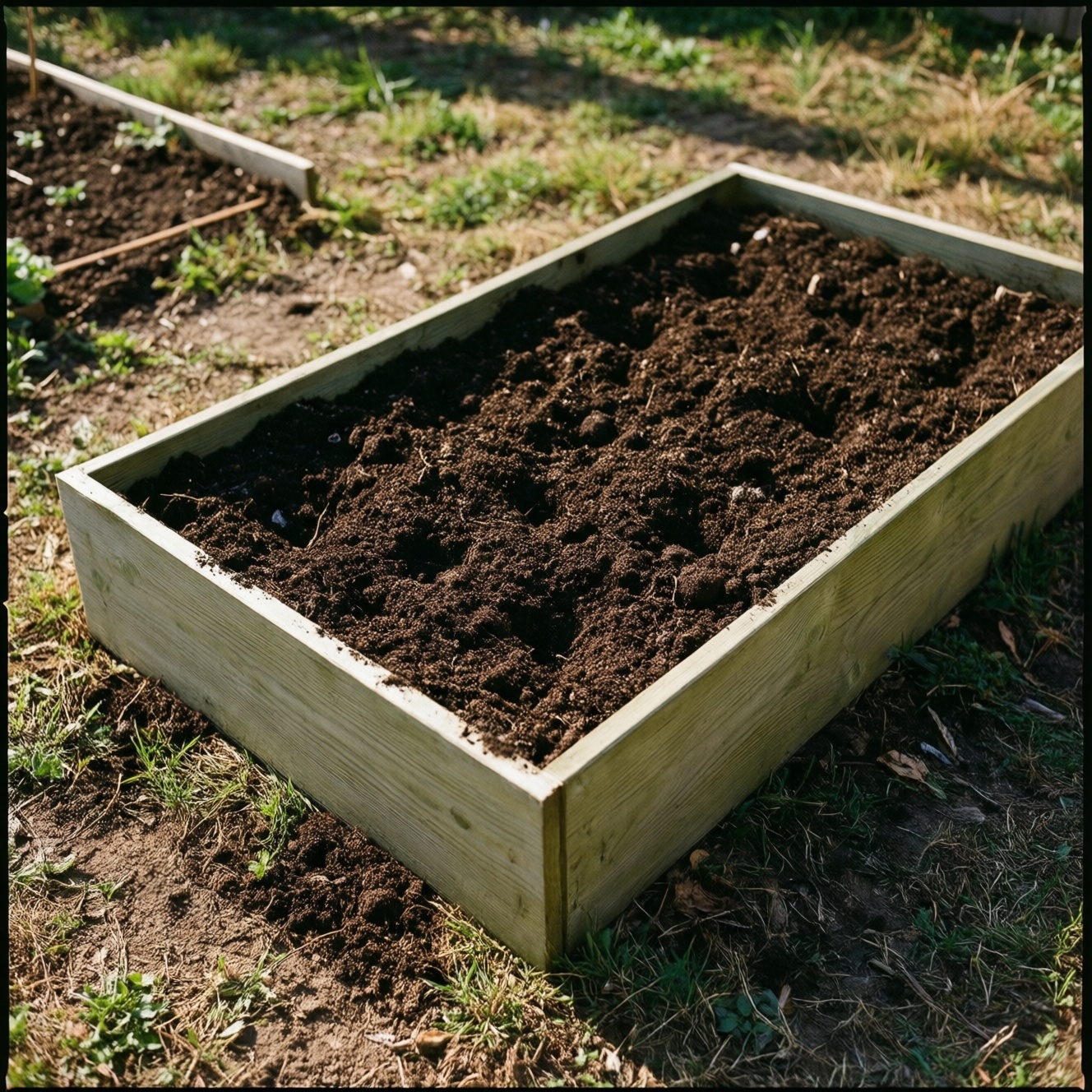 - Трудно прогревается весной → приподнятая высота + тёмная мульча/укрывной материал по сезону → пример: верхний слой более лёгкий (компост + рыхлая земля).